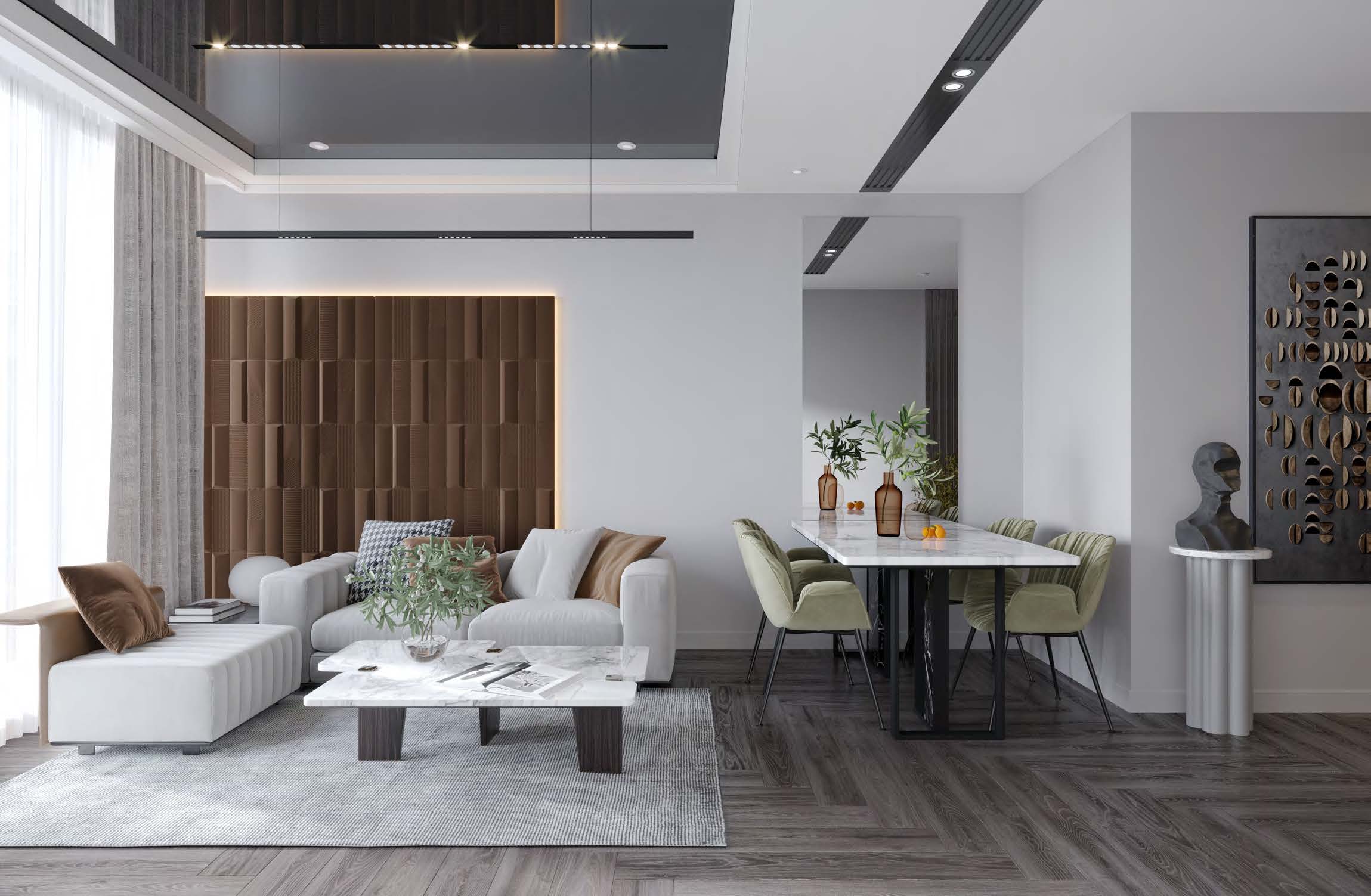 Sophisticated Interior Design at Bonito features meticulously crafted rooms with elegant finishes and modern details. Each space is thoughtfully designed to offer comfort and style, blending contemporary aesthetics with functional luxury.